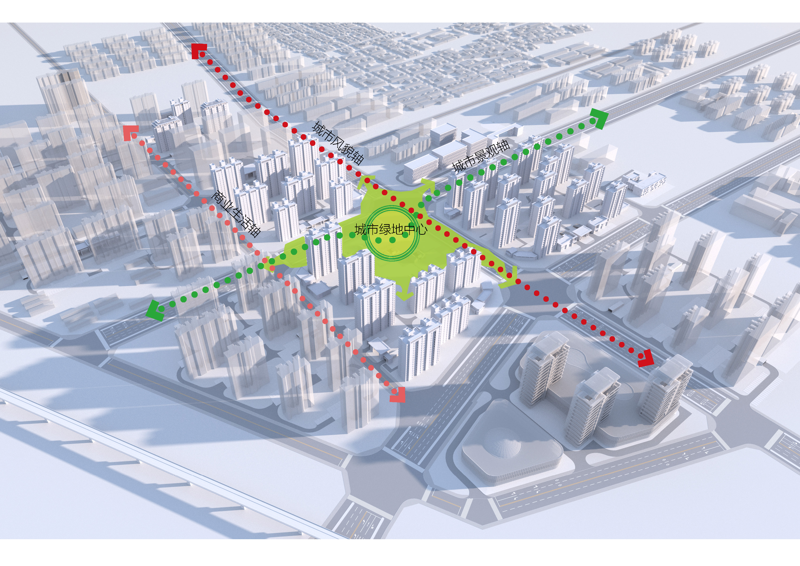 項(xiàng)目規(guī)劃設(shè)計(jì)理念為“一心兩軸”。其中,“一心”是結(jié)合區(qū)域文脈,打造以梁氏宅院所在城市綠地為中心的組團(tuán)社區(qū);“兩軸”一是沿城市主路營(yíng)造建筑錯(cuò)落有致的城市風(fēng)貌軸、二是沿張營(yíng)大街打造城市景觀軸。通過(guò)“一心兩軸”的打造,優(yōu)化城市風(fēng)貌建筑空間形象,構(gòu)筑宜人的開(kāi)放空間,創(chuàng)建完善的綠色交通系統(tǒng)以及布局完備的配套服務(wù)設(shè)施。
