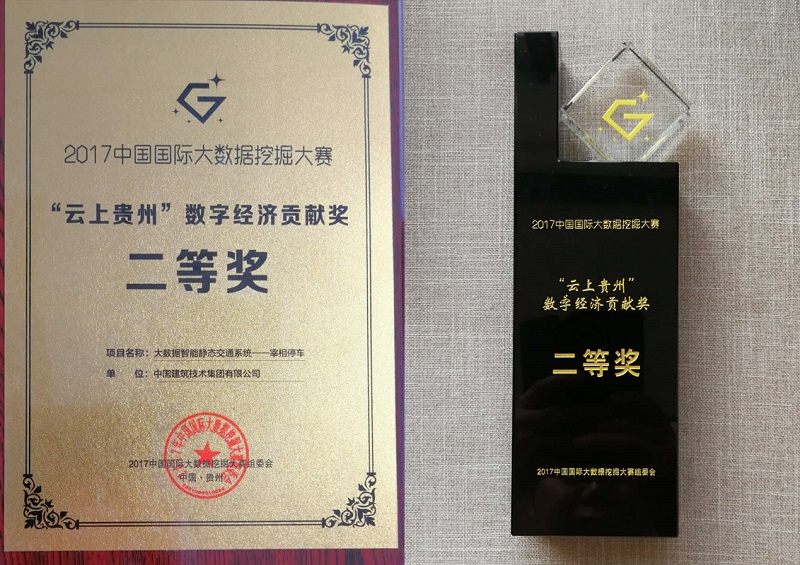2017年12月28日,2017中國國際大數(shù)據(jù)挖掘大賽在貴州省貴陽市落幕,我公司基于大數(shù)據(jù)云平臺的智能停車項(xiàng)目--宰相停車項(xiàng)目,獲得“云上貴州-數(shù)字經(jīng)濟(jì)貢獻(xiàn)獎(jiǎng)”二等獎(jiǎng)。