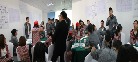 9月22日上午,在專業(yè)培訓(xùn)師的指導(dǎo)下,用貝爾賓團(tuán)隊(duì)角色理論測試每位員工的團(tuán)隊(duì)角色,結(jié)合該測試結(jié)果,進(jìn)行了一場充滿參與性、互動(dòng)性、實(shí)戰(zhàn)性、競爭性的沙盤模擬訓(xùn)練。新員工們分組抽簽決定各自的所處的地形情況及資源狀況,通過小組合作產(chǎn)出產(chǎn)品并到統(tǒng)一的市場交易獲得效益,通過效益的多少等多重指標(biāo)衡量經(jīng)營的整體狀況。培訓(xùn)中,小組成員充分地展示出了當(dāng)代年輕人開闊的思維方式,會(huì)場熱鬧紛紛。他們思維活躍、分工有序,在充分分析內(nèi)外形勢的前提下,有效經(jīng)營,各小組均獲得了十分可觀的經(jīng)營效果,得到了培訓(xùn)團(tuán)隊(duì)的一致好評,最后每個(gè)小組的精彩自我點(diǎn)評再次將培訓(xùn)推向高潮。會(huì)后大家意猶未盡,午餐時(shí)分依然在探討思路和方法。