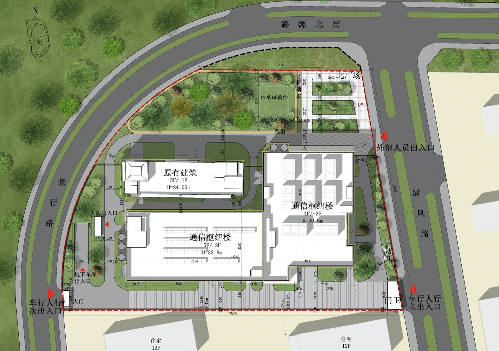 項(xiàng)目在保留原有通信樓基礎(chǔ)上,在南側(cè)及東側(cè)新建一座L型通信樞紐樓。項(xiàng)目建成后,可以滿(mǎn)足國(guó)際出口設(shè)備和互聯(lián)網(wǎng)安全設(shè)備擴(kuò)容需求,同時(shí)打造國(guó)際一流的物聯(lián)網(wǎng)、大數(shù)據(jù)分析、云計(jì)算及各類(lèi)智慧應(yīng)用基地,并為中國(guó)電信與中國(guó)移動(dòng)提供機(jī)房,充分滿(mǎn)足城市副中心辦公區(qū)及整個(gè)城市副中心區(qū)域未來(lái)多樣化的智慧通信需求以及網(wǎng)絡(luò)安全需求,為城市副中心提供更優(yōu)質(zhì)、更便捷、更安全的全方位通信服務(wù)。