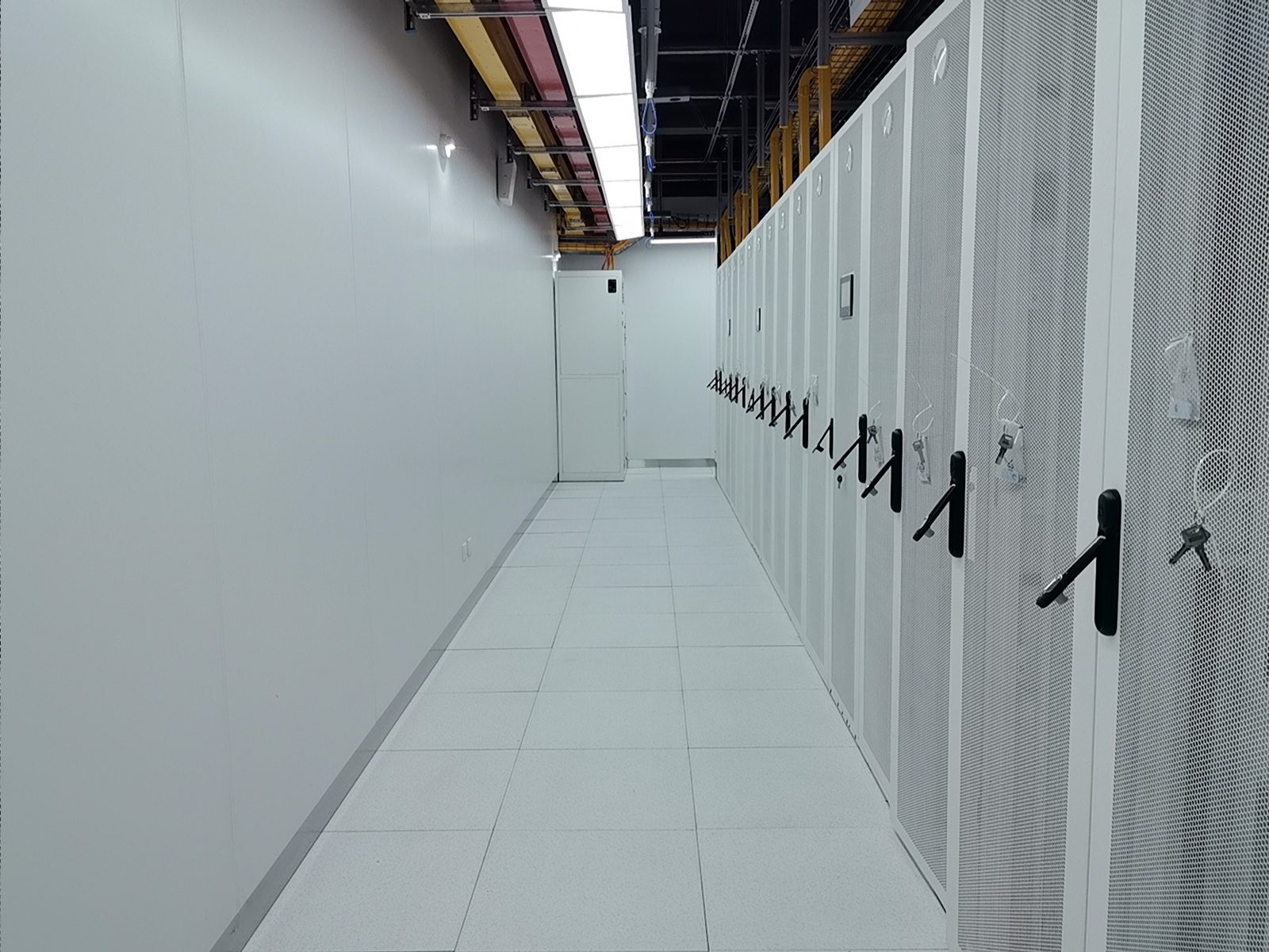 通過部署華為一體化模塊化UPS,我們實(shí)現(xiàn)了設(shè)備空間占用的顯著節(jié)約、連接線纜的減少以及系統(tǒng)可靠性的提升。維諦品牌的微模塊成套系統(tǒng),包括機(jī)柜、精密空調(diào)、動環(huán)監(jiān)控和電池監(jiān)控等組件,不僅系統(tǒng)集成度高,而且可靠性強(qiáng),其軟件平臺的開發(fā)響應(yīng)也十分及時。西門子的密集母線和智能小母線系統(tǒng),集成了母線測溫和在線監(jiān)控功能,進(jìn)一步增強(qiáng)了系統(tǒng)的可靠性。封閉熱通道的設(shè)計(jì),確保了系統(tǒng)擁有充足的冷量儲備,從而提高了容災(zāi)能力。封閉通道的玻璃觀察地板和內(nèi)部管道的PVC彩殼包覆,不僅保證了整體風(fēng)格的統(tǒng)一和協(xié)調(diào),還提升了美觀度。仿真測試機(jī)房3,一個280平方米的屏蔽機(jī)房,其頂面殼體設(shè)計(jì)為平頂,并且封閉熱通道采用了95吋LED顯示屏整體式移門,極大地提升了觀摩機(jī)房的視覺效果。在整體顏色管理方面,我們采用了紅/黃雙色對供配電A/B路、密集母線、智能小母線、電力電纜、PDU外殼等進(jìn)行區(qū)分,確保了清晰醒目。此外,采用彩鋼板墻面和夾心彩鋼板頂面,有效提升了機(jī)房的潔凈度和防塵能力。