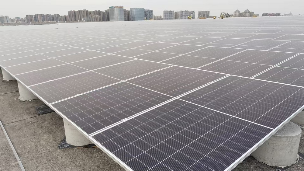 該項目位于四川省成都京東方光電科技有限公司廠區(qū)內(nèi),利用廠區(qū)現(xiàn)有建筑屋頂新建光伏發(fā)電項目,光伏裝機容量為19.17MWp,項目采取分片發(fā)電,集中并網(wǎng)方案,采用“自發(fā)自用”模式,光伏系統(tǒng)所發(fā)電量100%供廠區(qū)自用。