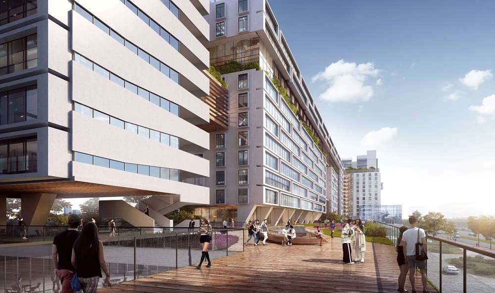 活力天街場景——構(gòu)思利用300余米長的架空平臺加上400余米長起伏的景觀步道,形成總長800米、貫穿整個基地的帶狀連續(xù)步行空間(天街),避開喧囂,開放視野,一路通達,體驗活力。