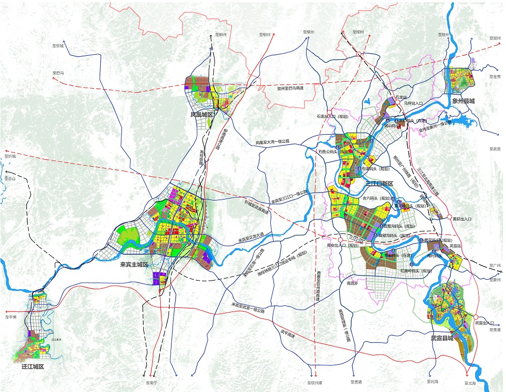 區(qū)域一體化發(fā)展規(guī)劃——三江口新區(qū)未來將與來賓主城區(qū)形成來賓市“雙核驅(qū)動”的發(fā)展新格局。三江口新區(qū)作為產(chǎn)業(yè)、經(jīng)濟(jì)、商務(wù)中心,主城區(qū)作為行政、文化、科教、生活中心,通過區(qū)域間半小時(shí)快速交通體系形成產(chǎn)業(yè)協(xié)作、資源共享、基礎(chǔ)共建、功能互補(bǔ)的“來賓雙子城”。