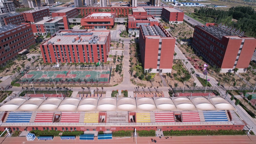 規(guī)劃布局以傳統(tǒng)禮教制式結(jié)合中式庭院格式,采用動靜分區(qū)過渡的規(guī)劃邏輯,將教學(xué)相長,綜合培養(yǎng)融入其中:建筑風(fēng)格上以學(xué)院風(fēng)為主,采用紅磚,鋼結(jié)構(gòu),玻璃,清水混凝土等材料,形成了現(xiàn)代建筑與工業(yè)風(fēng)相結(jié)合的立面風(fēng)格,體現(xiàn)了烏海的城市特點。