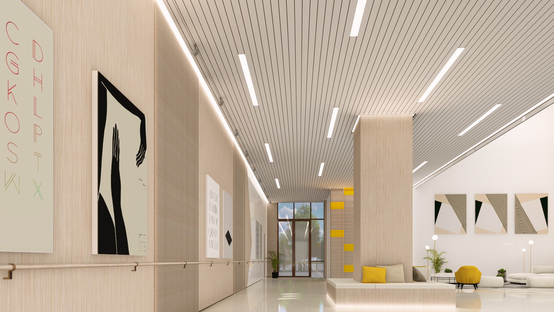 在地塊規(guī)劃上采用院落式布局,西側(cè)1#樓為老年大學(xué)教學(xué)樓,東南側(cè)2#樓為老干部活動(dòng)中心,兩個(gè)L形建筑圍合成開放程度不同的入口廣場(chǎng)以及中央景觀庭院。沿街設(shè)立公園式全開放綠地景觀,為來年人提供開放交流的、休憩、集散等公共性活動(dòng)場(chǎng)所;進(jìn)入場(chǎng)地內(nèi),由三棟建筑圍合而成的入口廣場(chǎng)將建筑的主要出入口組織在一起,形成集中的入口廣場(chǎng)集散空間;向東轉(zhuǎn)折進(jìn)入內(nèi)部中央庭院,形成安靜的內(nèi)院景觀。