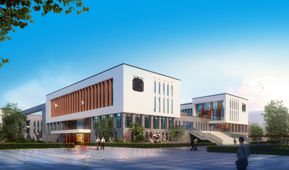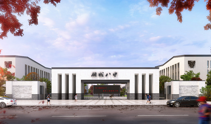 建筑理念——校園的歷史原型:“辟雍”體現(xiàn)了“天圓地方”的中國傳統(tǒng)宇宙觀。整個校園立面材質(zhì)以黑、白、灰為基調(diào),取徽派建筑之精華、融合現(xiàn)代建筑設(shè)計手法,脫離于傳統(tǒng),不失其韻味。中心造型力求現(xiàn)代、空靈、內(nèi)蘊,輪廓線平緩、舒展,塑造出桐城市第八中學(xué)的現(xiàn)代風(fēng)貌。布局上,中心雕塑作為整體校園的核心,圍繞中心雕塑設(shè)置行政綜合樓、高一、高二教學(xué)實驗樓和高三教學(xué)樓。