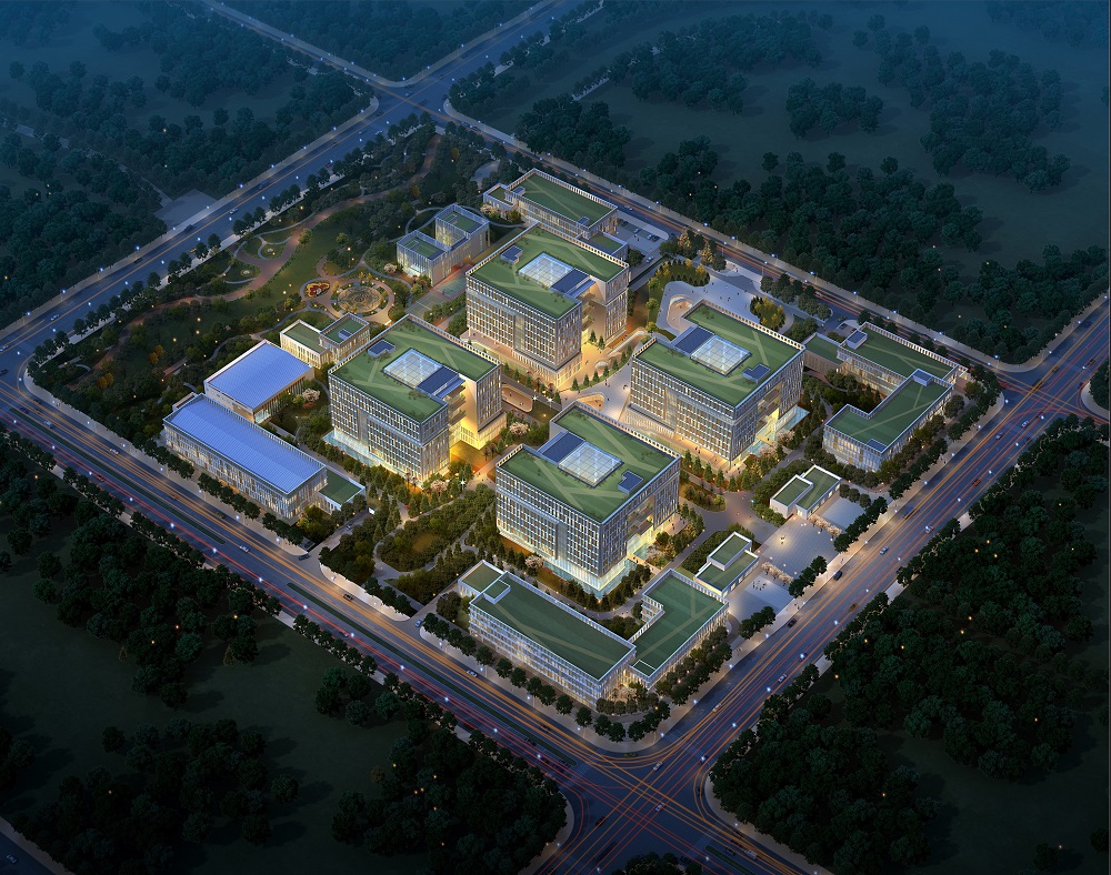 功能分區(qū):本項目設計將4棟39.4米高的主要研發(fā)辦公大樓放在場地正中,其它相關的辦公、實驗、服務配套等建筑圍繞在其中周。